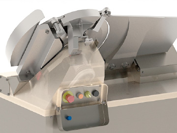 Blade cover with Interlock. Machine never starts without Cover. Interlock grinder unit and Extra Emergency stop on the unit eliminates the accidental start.
