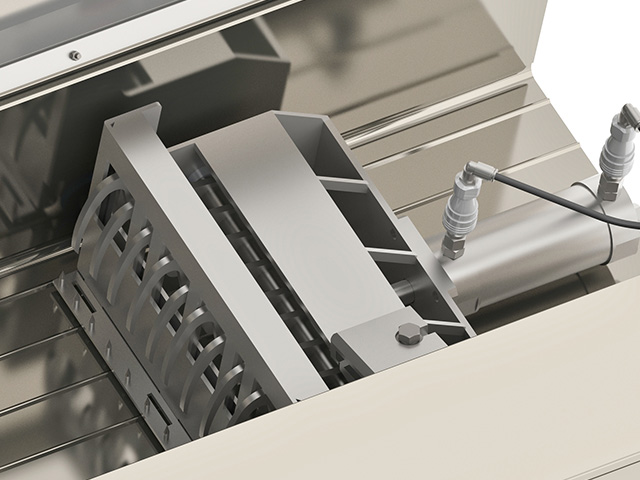 sliced productions are 'CATCHED' by the air pressure drive. This helps to decrease more labor costs.